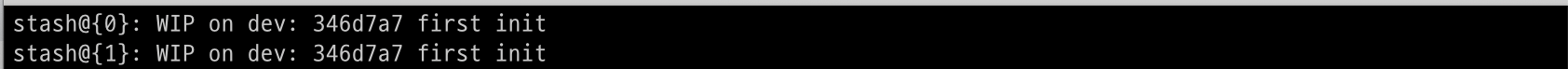 stash 영역은 stack 자료구저의 형태로 나타납니다. 즉, 새로 들어간 stash가 가장 위쪽인 0번을 부여받고 이전에 들어가 있던 stash는 이후 순번을 부여받게 됩니다. 그래서 stash apply를 하게 되면 가장 위에있는 stash로 복구합니다. apply를 한다고 해서 바로 stash가 삭제되지 않습니다. 그 list를 볼 수 있는 명령어가 stash list 인데요. 해당 명령어를 이용하면 아래처럼 확인할 수 있습니다.