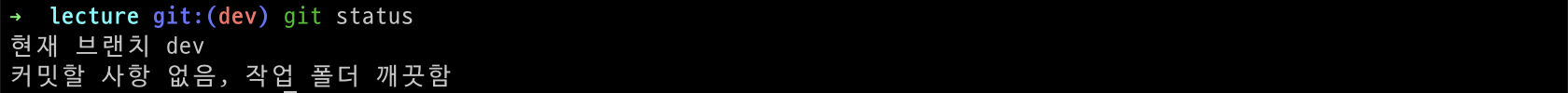 다시 status 명령어를 통해 Index 영역이 어떻게 되어있는지 확인해보도록 하겠습니다. 깨끗해진걸 아래와 같이 확인할 수 있습니다.