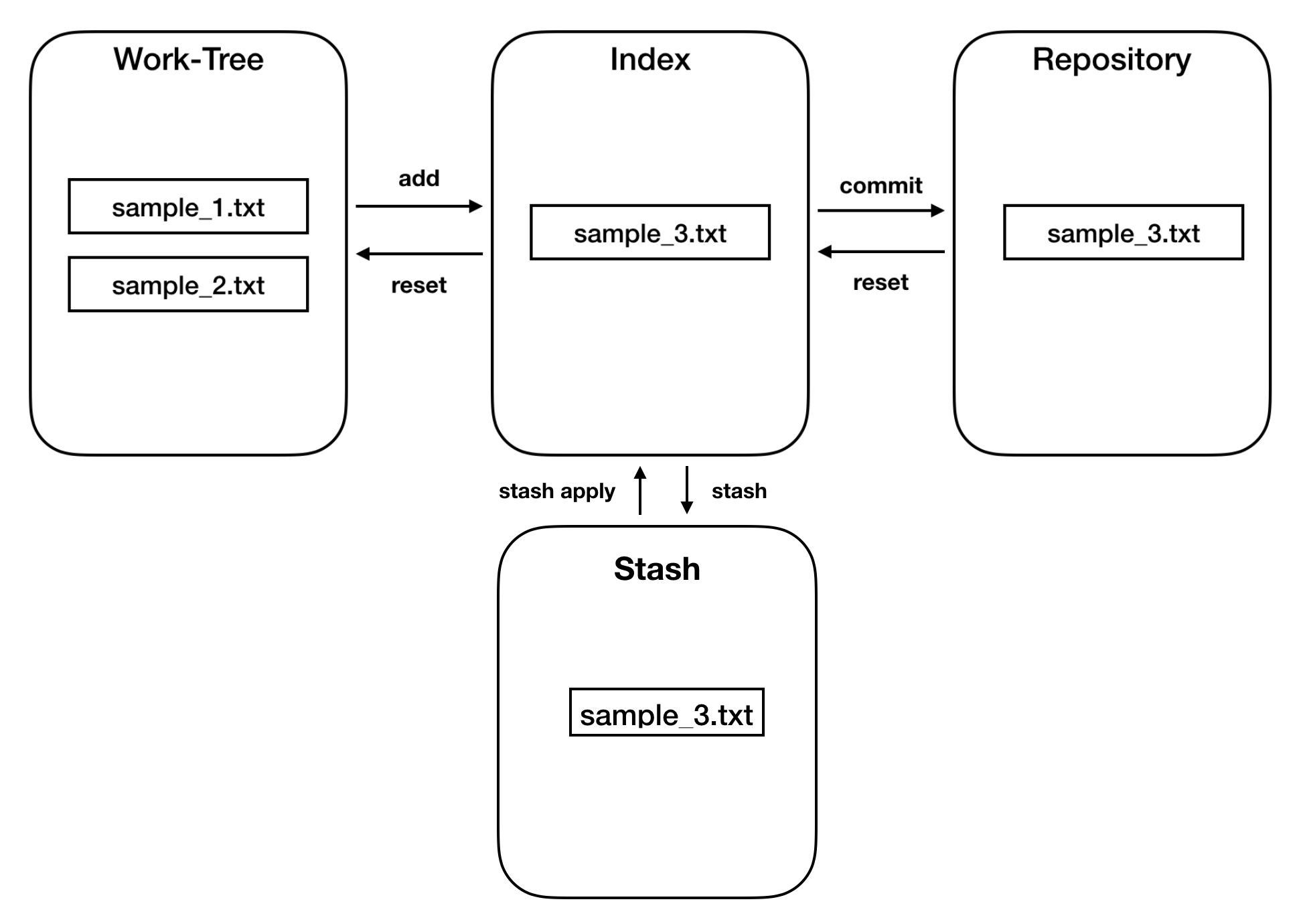 [git] git을 이용한 버전관리 - 기본편(add, commit, status, log, reset) 에서 우리는 처음에 git에서 사용하는 저장소에 대해서 알아보았었습니다. 대표적으로 Work-Tree, Index, Repository가 있었는데요. 사실 여기에 하나의 저장소가 더 있는데요. 바로 stash 입니다. stash 영역은 스택 자료구조료 되어있습니다.