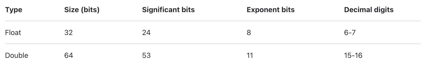 - UInt: 32-bit 양수, 범위 0 ~ 2^32 - 1