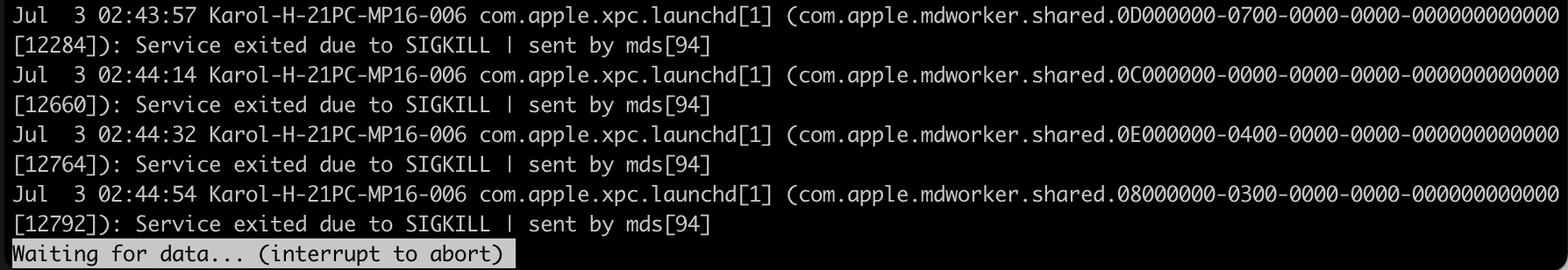 tail 명령어의 -f 기능도 사용할 수 있습니다. 바로 +F 옵션을 이용하시면 됩니다. 해당옵션을 이용하면 아래처럼 로깅 처럼 실시간으로 최신으로 갱신되는 파일의 정보를 확인할 수 있습니다.