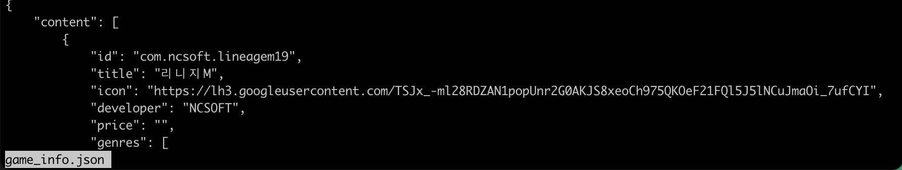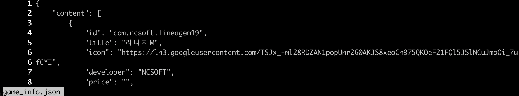 +숫자를 옵션으로 입력하면 숫자만큼 스킵한 다음 페이지를 화면에 나타냅니다. 아래 명령어를 이용하면 game_info.json 파일의 5번째 줄 부터 화면에 나타나게 됩니다.