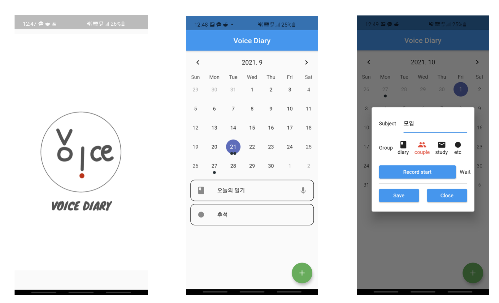 보이스 다이어리는 한줄의 메모와 음성을 통해 기록을 남길 수 있는 다이어리 어플리케이션입니다.