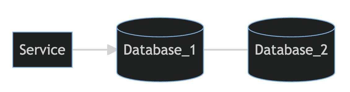 노드와 노드를 이어주는 간선을 선언해보도록 하겠습니다. 간선은 기본적으로 -->를 통해서 선언할 수 있습니다. 이렇게 선언하면 그래프로써 화살표가 있는 간선이 그려지게 됩니다. 아래 코드는 Service라는 이름을가진 A 노드에서 Database라는 이름을 가지고 있는 B 노드로의 화살표 간선이 생기는 플로우차트입니다. 그리고 B와 C 사이에는 방향이 없는 간선을 하나 두었습니다.