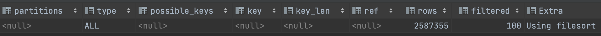 - Extra : Using filesort