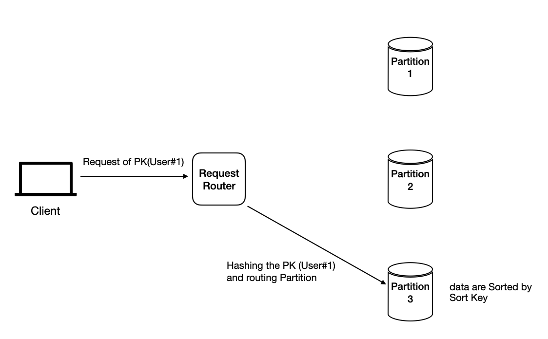 - 테이블을 수평적으로 분산하기 위해 Partition Key 값에 따라 데이터를 각 파티션에 분배합니다.
