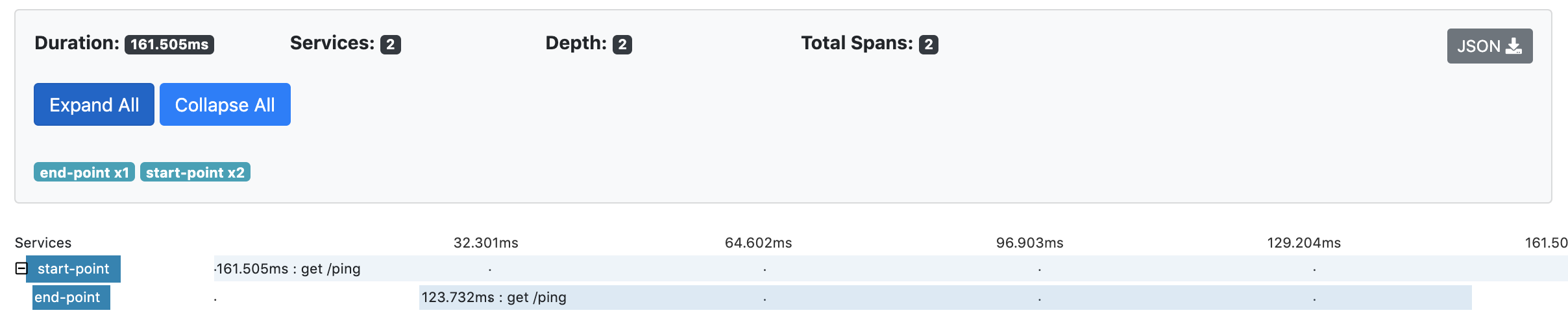 첫 화면에 tracing이 잡힌 것을 볼 수 있습니다. 그리고 그 tracing을 클릭하면 아래와 같이 자세히 볼 수 있는 화면이 나오는것을 알 수 있습니다.