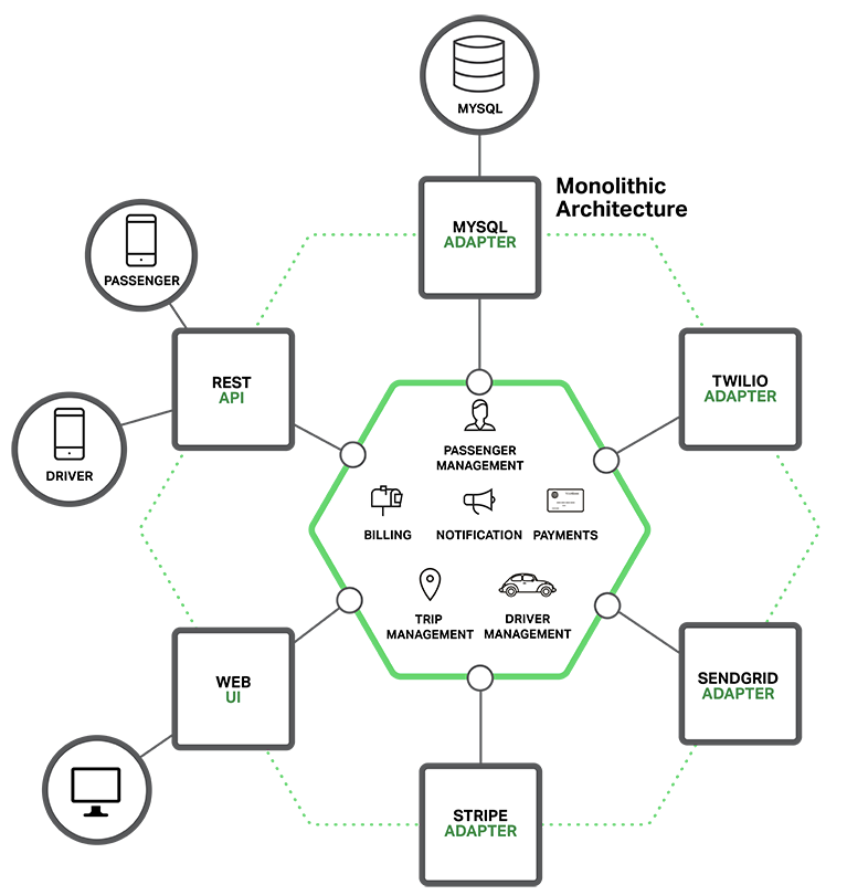 모놀리식 아키텍처란 서비스의 아키텍처를 구성할 때 모든 서비스를 구성하는 비즈니스 로직, DB, UI 등은 논리적으로 모듈화 될 수 있지만 하나의 패키지에 담아 빌드하고 배포하는 방법입니다. 이러한 방식은 application의 언어나 프레임워크에 제한을 가지게 됩니다. Java라고 하면 일반적으로 Tomcat이나 Jetty의 웹서버에 War 파일로 배포되게 되듯 말입니다. 이러한 방식은 사실 일반적입니다.