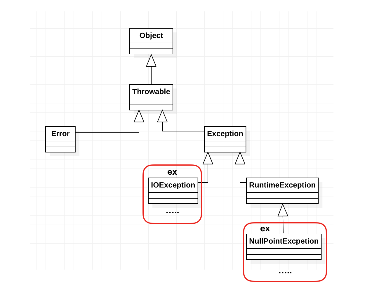 모든 Exception과 Error 클래스는 Throwable 클래스를 상속받고 있으며, Throwable은 최상위 클래스 Object를 상속받고 있습니다. 계층적 구조를 보면 아래 이미지가 나옵니다.