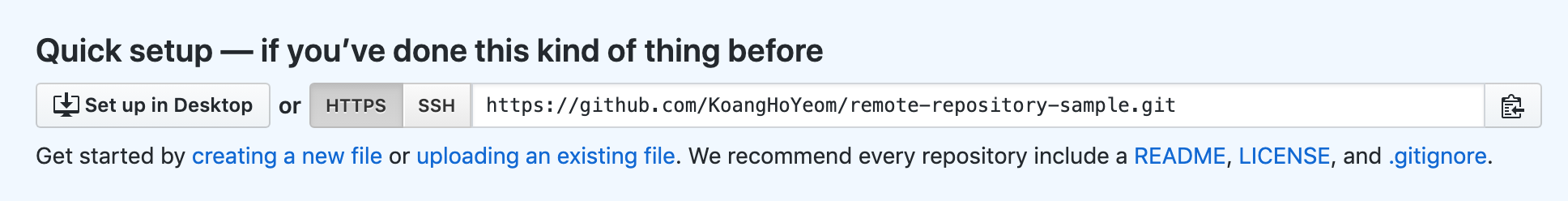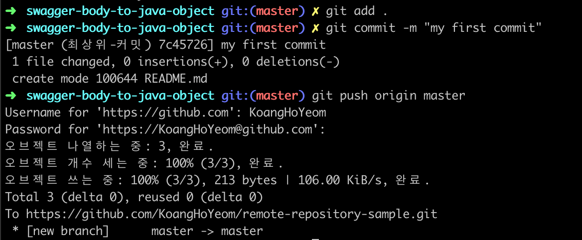 $ git remote add origin https://github.com/KoangHoYeom/remote-repository-sample.git