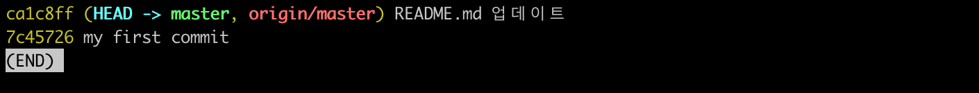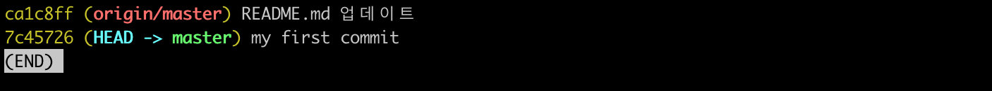 제대로 가져왔는지 확인을 위해 git log 명령어으로 확인해보겠습니다. 우리는 아래 며령어로 HEAD와 origin/master가 가리키고 있는 위치가 다른것을 확인할 수 있습니다.