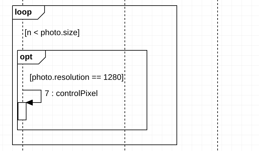 guard가 한 메시지에 대해서 조건을 명시했다면, sequnce fragments는 범위로 조건을 명시할 수 있습니다. 즉, 특정 부분에 대해서 일정 부분의 메시지를 반복하던지 조건을 명시하던지 할때는 sequence fragments가 명확할 수 있습니다.
